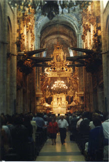 23 jaar geleden bezocht ik met mijn vrouw Santiago voor het eerst. We vierden vakantie in Noord Portugal, en van daaruit was het met de auto een goede dagtrip. Van onderweg herinner ik me weinig, behalve dat we terugkomend in Vigo pauzeerden. We slenterden in de buurt van de haven langs een hele rij terrassen, ieder met een manspersoon die ijverig gebarend en pratend voorbijgangers naar binnen nodigde. Als een rij zingende vogels langs een bospad, ieder met zijn eigen boom en nestplaats. We zwichtten voor de bijna laatste, omdat we echt wel trek hadden. Hij bood gestoofde kabeljauw, en hoewel de toestand van versheid van de vissen die hij ons liet zien twijfelachtig was, smaakte het toch goed en hebben we er niets van gekregen.